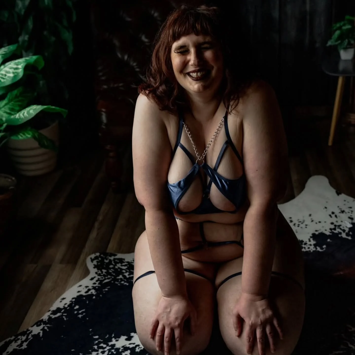 I’m known for my blunt, dark humor, zero-BS approach, and ability to make you feel comfortable enough to shed layers—physically and emotionally. Whether you’re flying solo or bringing a partner, I’ll guide you through a journey of self-love, body acceptance, and intimacy exploration that’s as empowering as it is unforgettable.